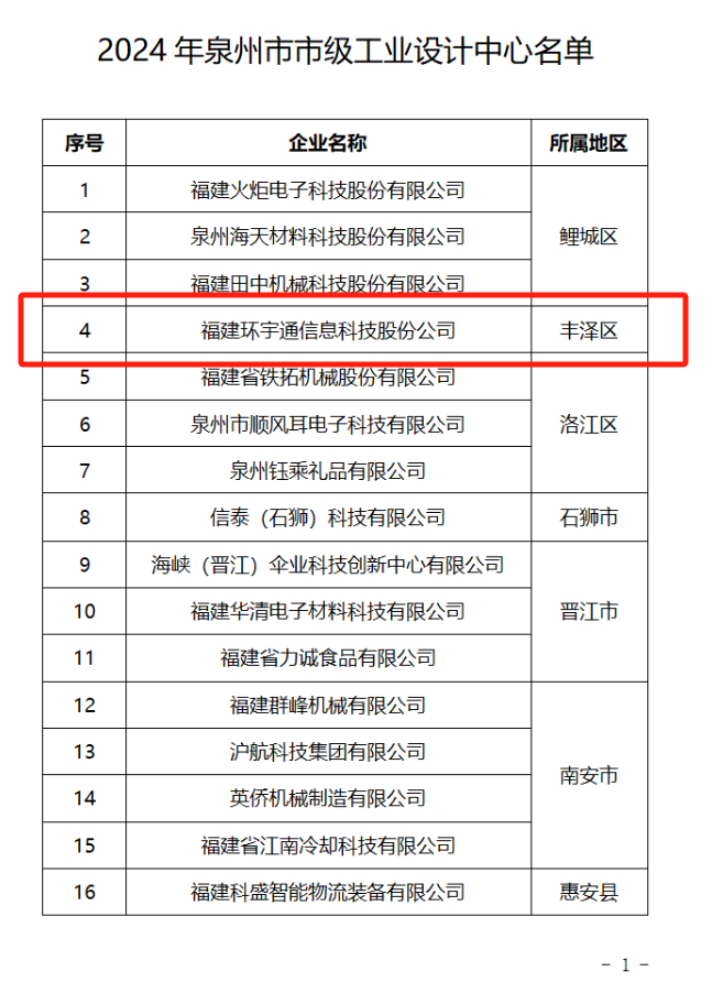 关于公布2024年泉州市市级工业设计中心名单的通知